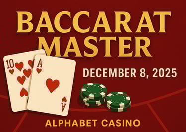 The Baccarat Master – December 8, 2025 event at ALPHABET CASINO delivers a luxurious, strategic, and deeply engaging card experience. With refined visuals, insightful gameplay tools, and December’s festive energy amplifying the excitement, this special edition stands out as one of the most polished baccarat presentations of the year. Whether you're deepening your strategic understanding or simply appreciating the elegance of the game, this event offers a premier baccarat experience.