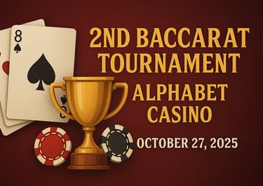 The 2nd Baccarat Tournament at ALPHABET CASINO brings together the thrill of competition and the sophistication of one of the most beloved card games in the world. Baccarat has long been known as the game of skill, focus, and precision, and this event captures its essence perfectly.